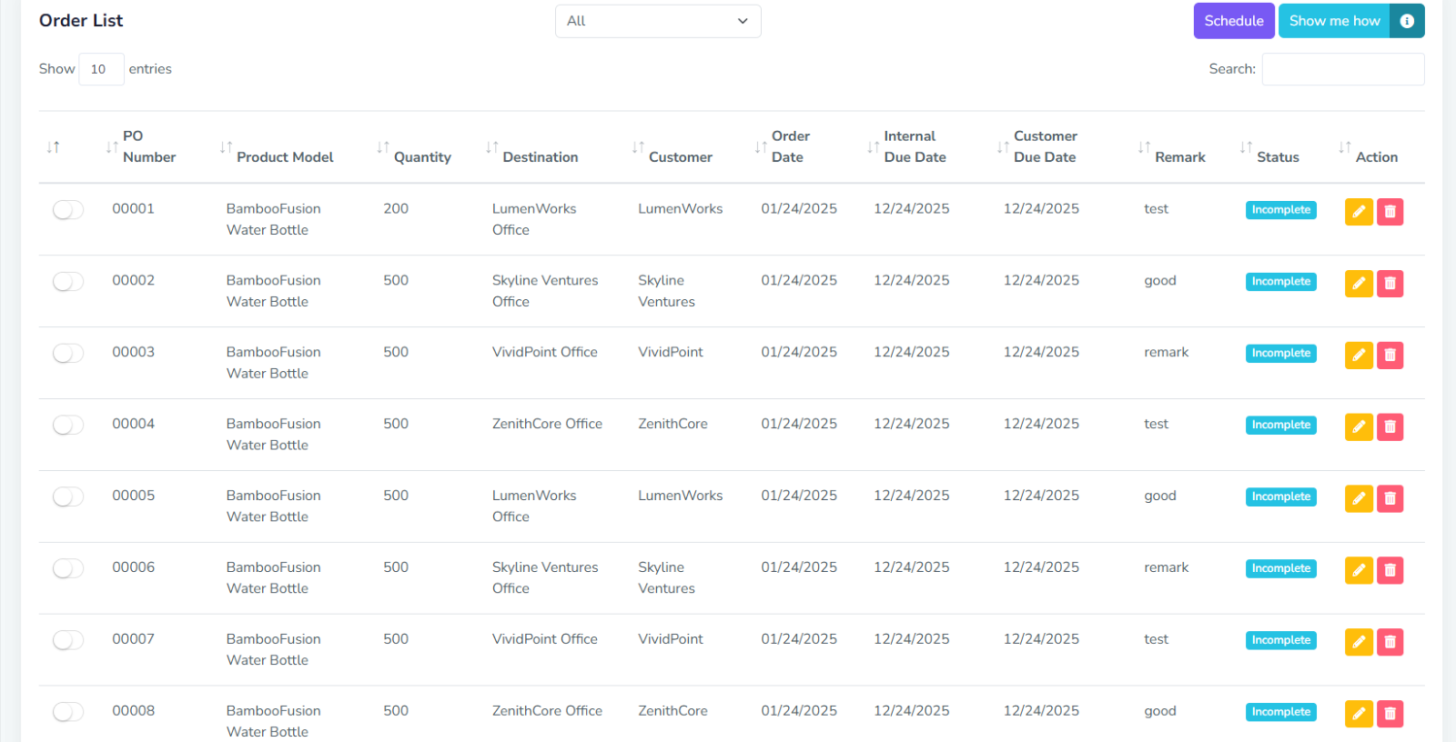 After uploading, your new orders should appear in the Order List and a notification like this should appear: