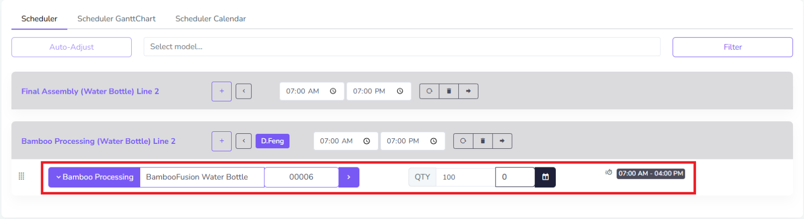 From the image above, it shows all the Assembly Stations that have scheduled production for the for its selected date