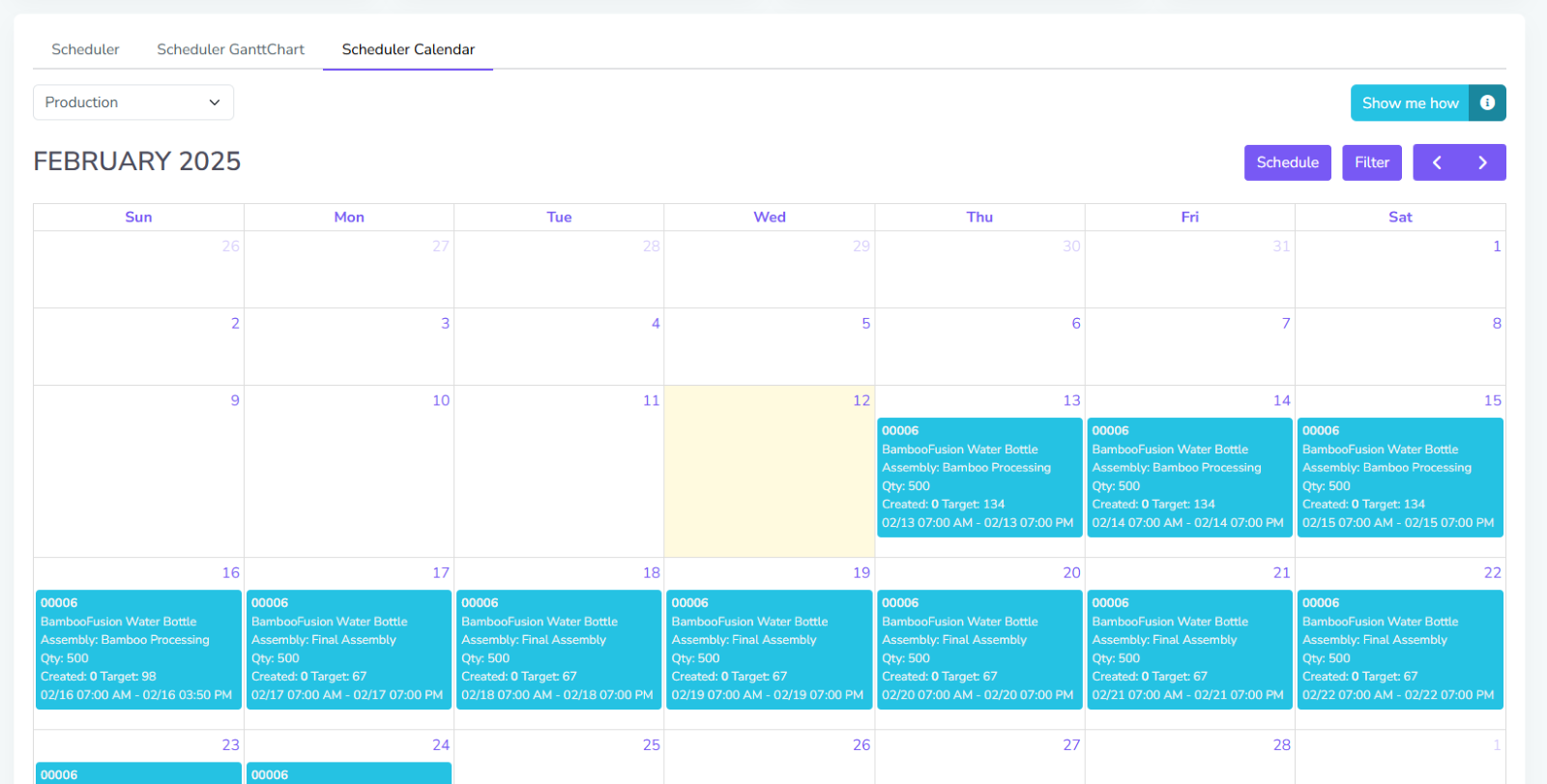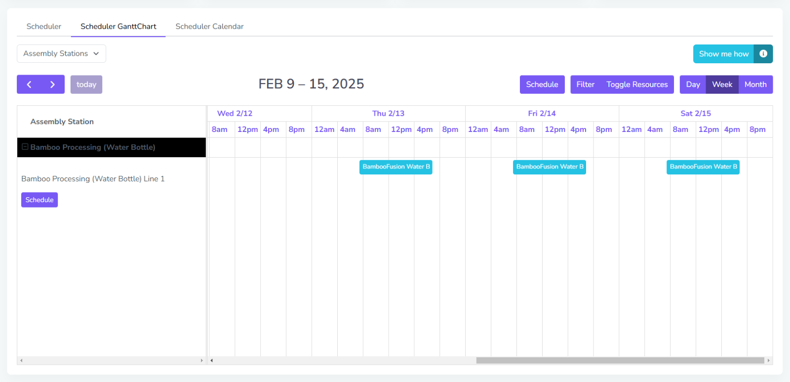 In the Scheduler page, there are 3 views that the user can use: the Scheduler view, Gantt Chart/Timeline view, and the Calendar view