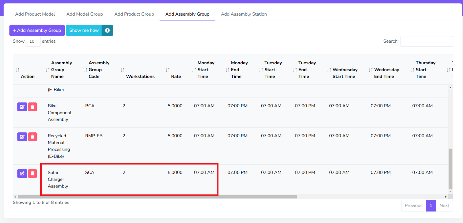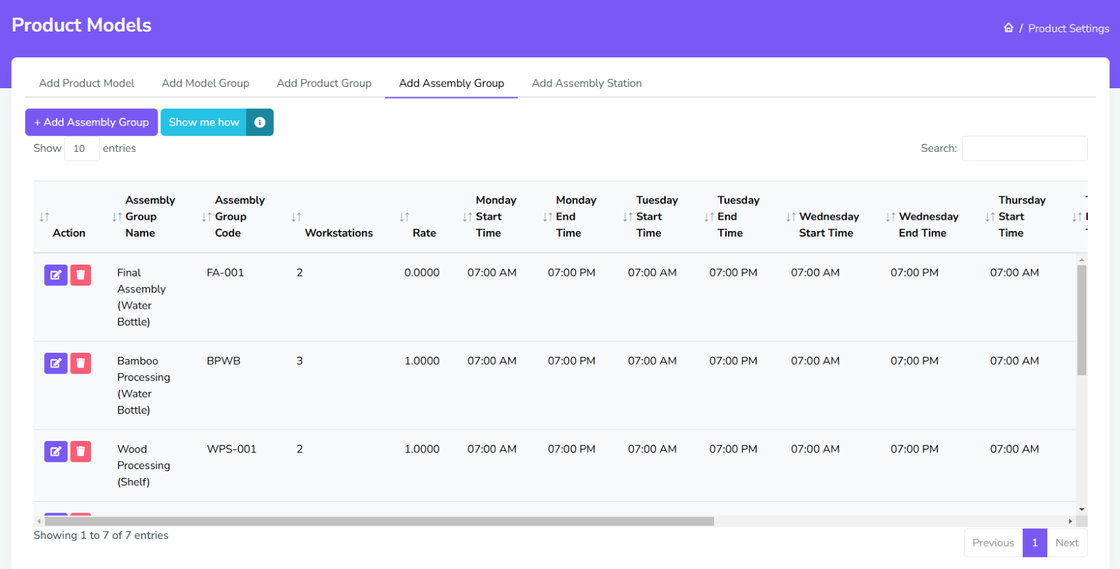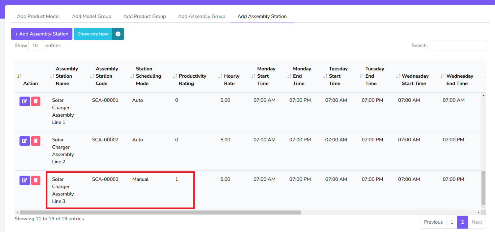 For Assembly Stations, there are two sets of configurations needed, one for station info, which includes the usual settings like the one in Assembly Group, and the Idle Time, which includes settings its idle/break times