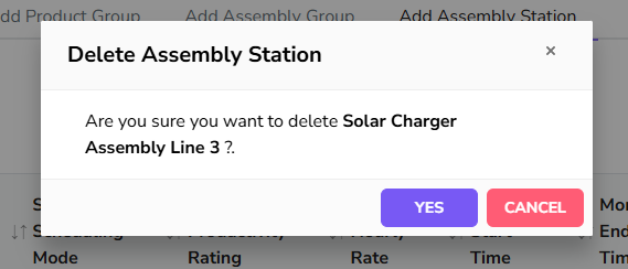 Note that you can also set the Assembly Station if they are used for manual scheduling. If you do not have any Assembly Station set for manual scheduling for the assembly group, then you won't be able to manually schedule any assemblies related to it