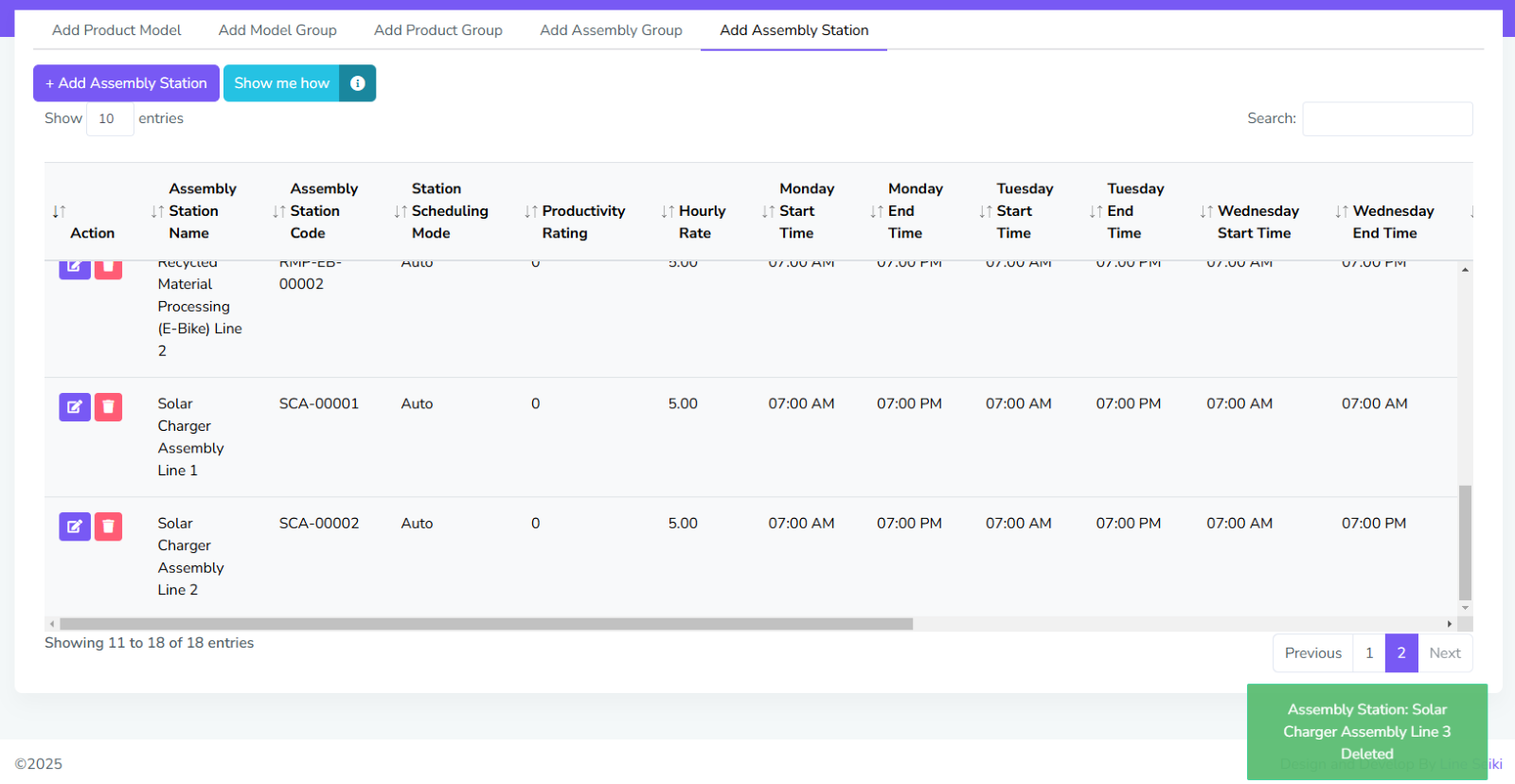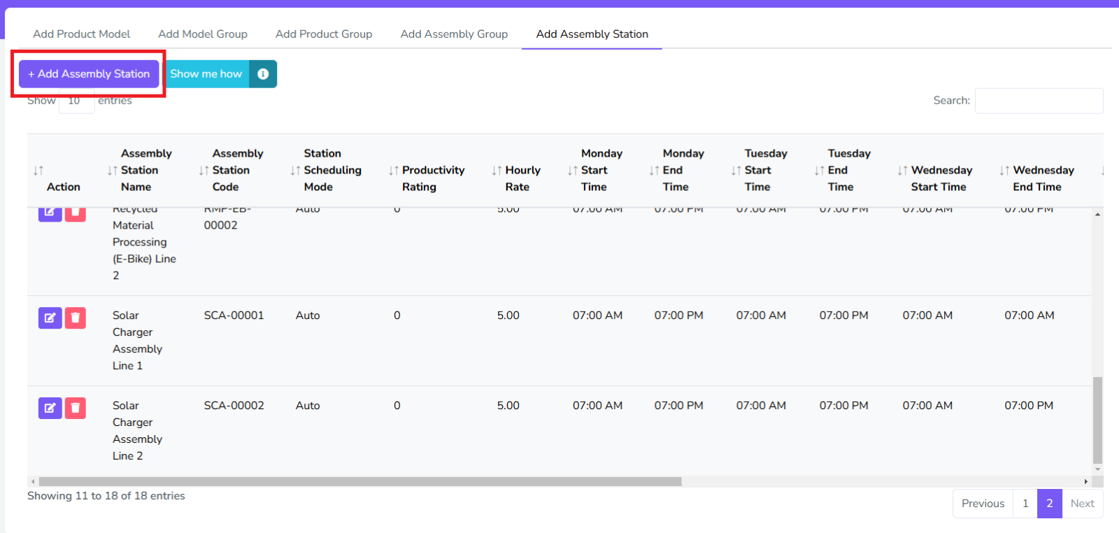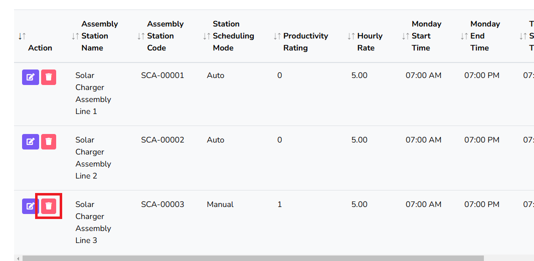 If you need to delete Assembly Station, just click the delete button