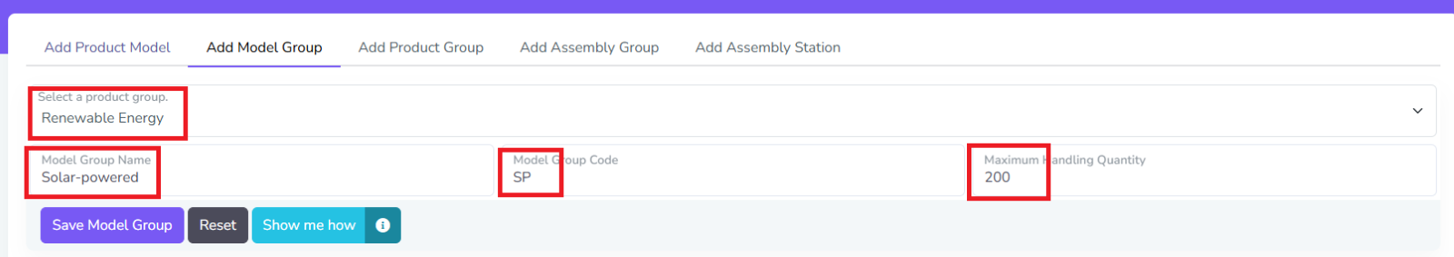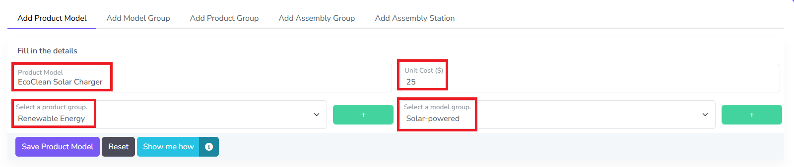 Fill in the required fields and click Save Product Model