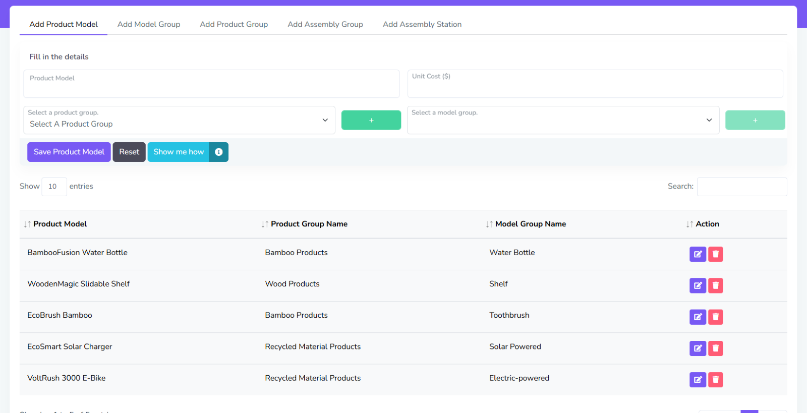 To create one, go to Add Product Model tab